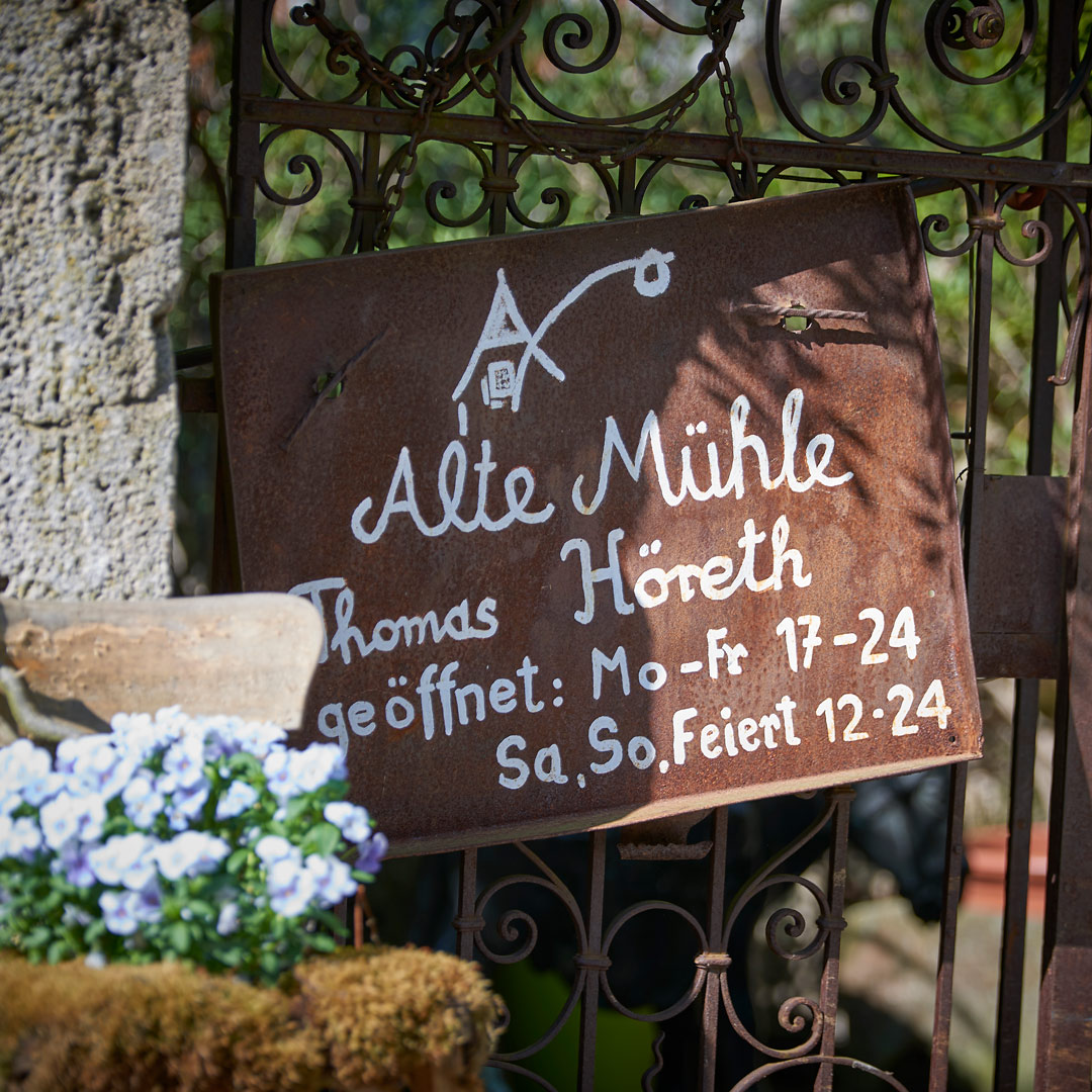 Vor 39 Jahren hat Thomas Höreth damit begonnen, aus einer vergessenen Mühle aus dem 11. Jahrhundert einen einmaligen Ort für Essen, Trinken und Schlafen zu erschaffen. Gudrun Höreth brachte dabei stets ihre Liebe zum Detail, die Gastfreundlichkeit, und ihre Herzlichkeit im Inneren der historischen Mauern zum erblühen. „All unser Einsatz diente dazu, die ursprüngliche Schönheit der Mühle wieder frei zu legen, um dieses einzigartige Ambiente zu erhalten“, so Gudrun Höreth.