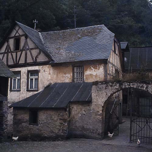 Es war das Jahr 1975 als der junge Thomas Höreth durch das Koberner Mühlental spazierte und auf die alte, dem Verfall geweihte Mühle aufmerksam wurde. Es war ein Sonntagmorgen und da er davon ausgehen konnte, dass alle anständigen Leute in der Kirche waren, traute er sich, das quietschende Eisentor, das einen Spalt offen stand, noch ein wenig weiter zu öffnen und einen Blick in den Innenhof zu werfen. Mist und Gülle und ein totes Huhn sah er da – doch der Anblick konnte dem Charme des Anwesens nichts anhaben. Der ganze Zauber der vergangenen Jahrhunderte war im Dornröschenschlaf erhalten geblieben. „In meiner Fantasie war das ein altes Frauenkloster“, erinnert er sich an den Moment, in dem er dem Anwesen rettungslos verfiel, „ich konnte förmlich die Nonnen lobpreisen hören, als ich die Mühle zum ersten Mal betrat.“