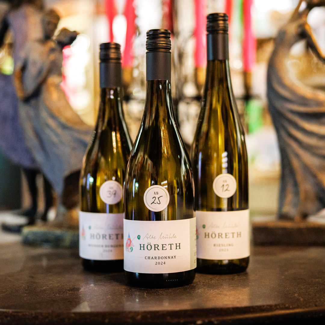 Lassen Sie sich bei einem Besuch unseres Restaurants in der Alten Mühle Höreth geschmacklich inspirieren. Nehmen Sie gerne eine Flasche für zu Hause mit – oder fragen Sie uns nach unserer aktuellen Weinliste. Wir senden Ihnen Ihre Favoriten direkt nach Hause.